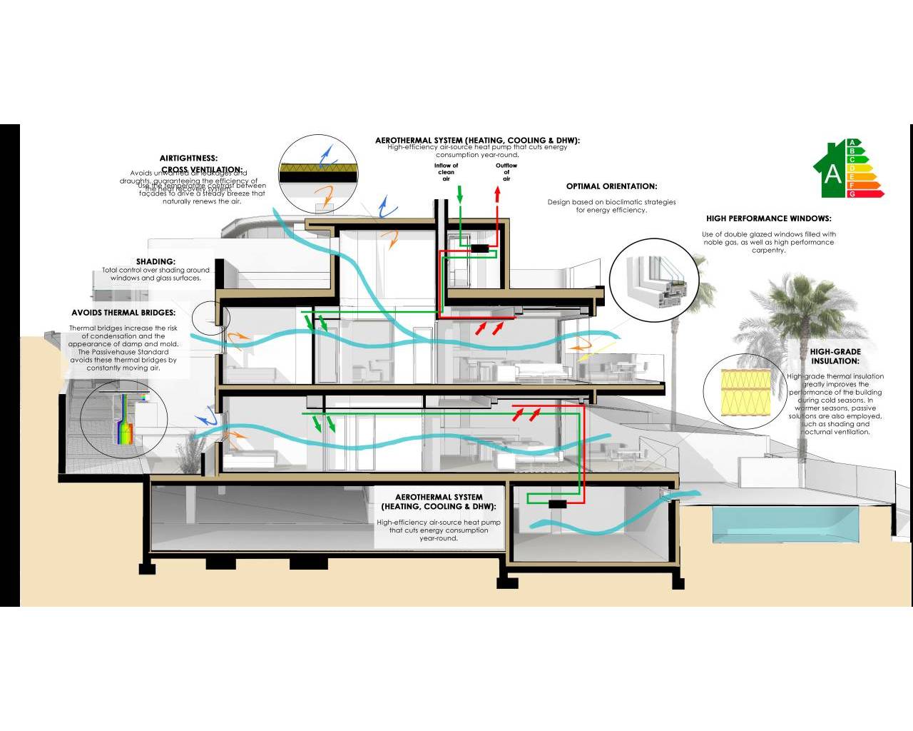 Boligene på bakkeplan byr på romslige private hager med utsikt mot Middelhavet og god plass til å etablere eget basseng. I tillegg har disse en praktisk semi-kjeller med fleksible muligheter for å skape ekstra soverom, oppholdsrom eller hjemmekontor.
