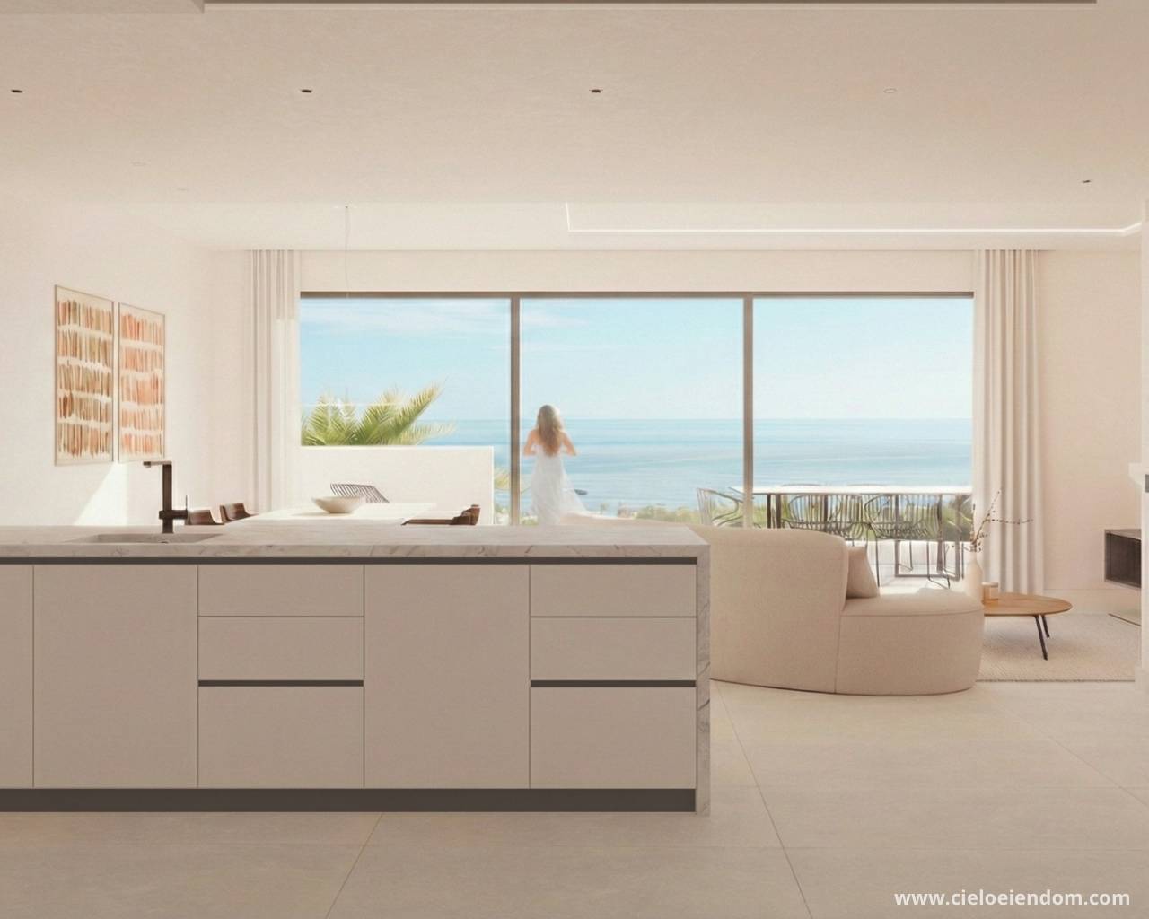 Fellesområdene er nøye utformet med fokus på komfort og kvalitet, og inkluderer et elegant infinity-basseng, avslappende chill-out sone med havutsikt, samt privat underjordisk parkering.