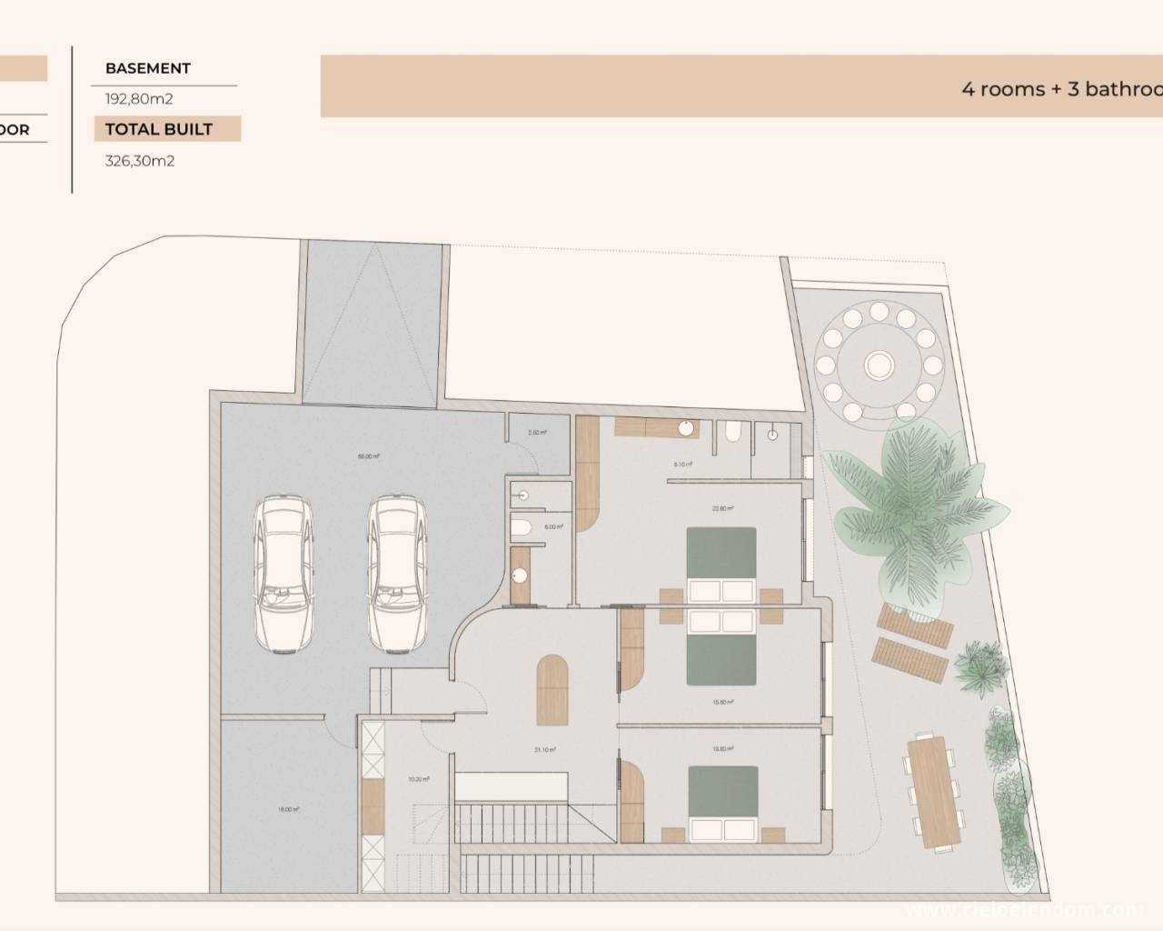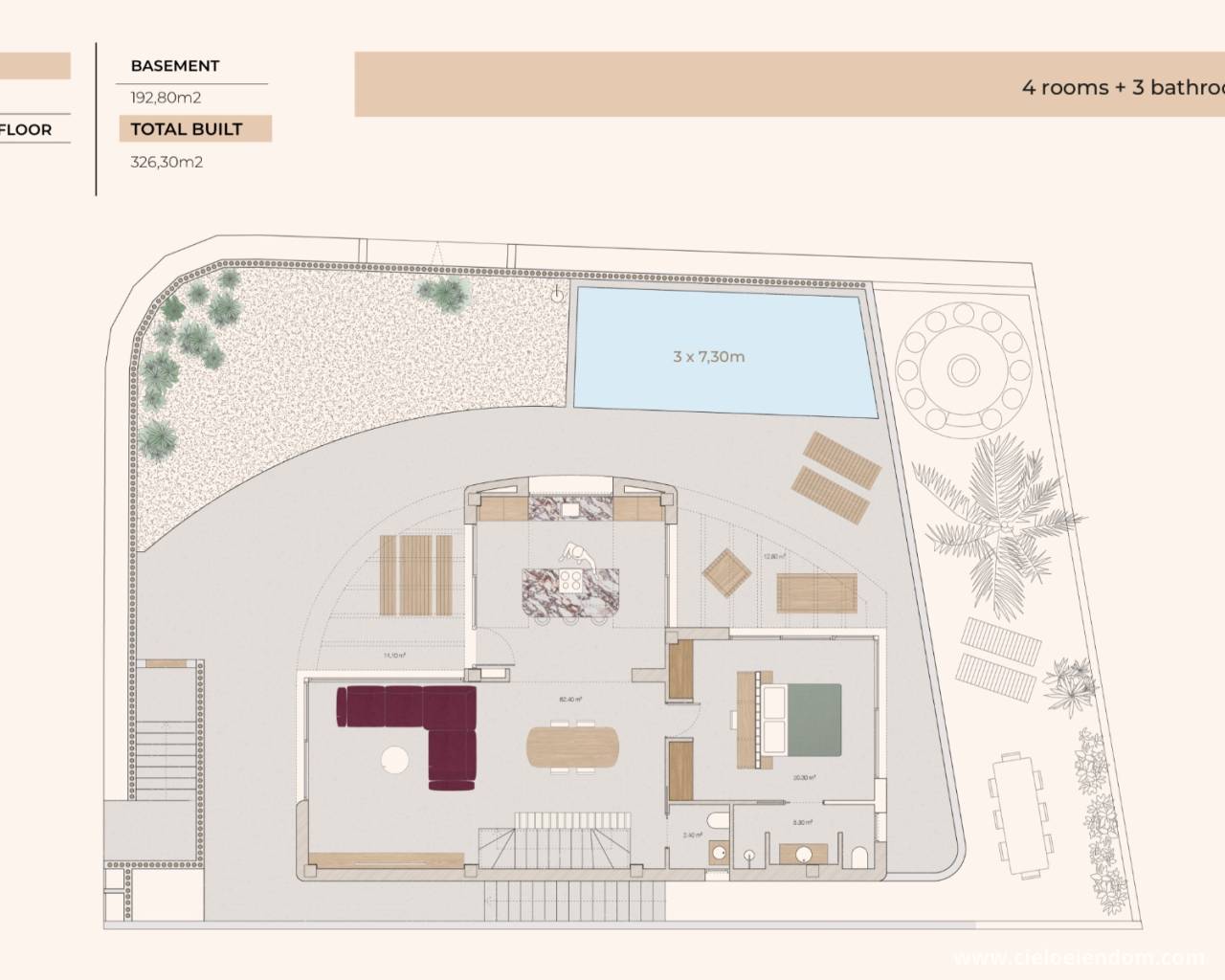 Each villa includes a private swimming pool of approximately 3 x 8 metres with an outdoor shower, as well as a large basement level measuring approximately 192.8 to 231.9 m² — see pictures.