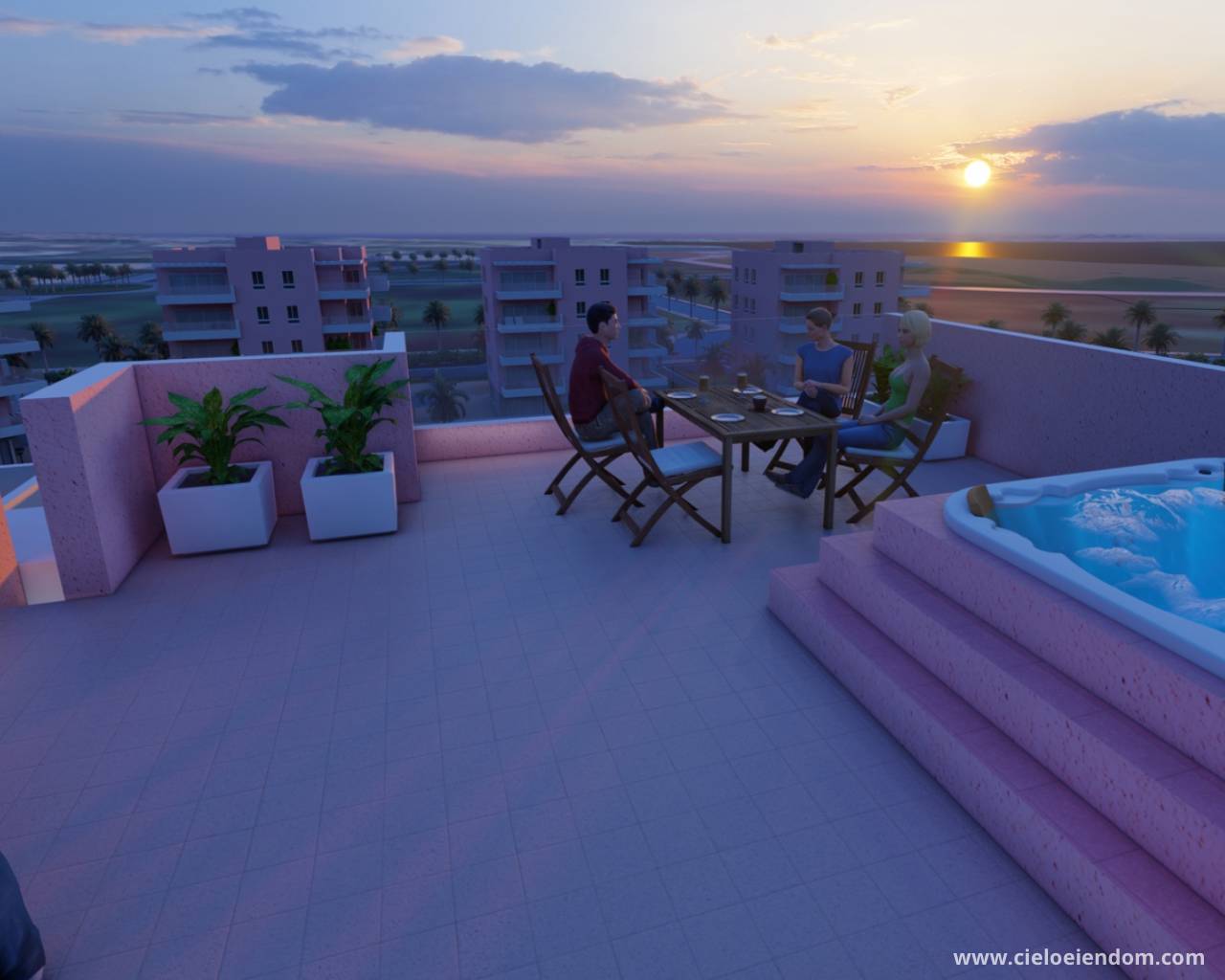 Penthouse-leilighetene har i tillegg romslige takterrasser med: